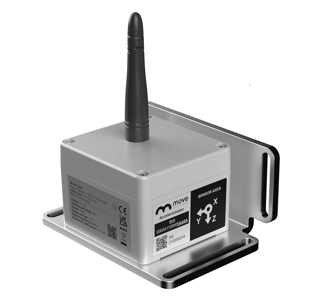 Once powered and connected via LoRaWAN (868 MHz), each accelerometer transmits data to the MyMove IoT Platform. All configuration parameters—including thresholds, sampling rates, and acquisition cadence—can be adjusted remotely. After deployment, no manual intervention is required for routine operation.